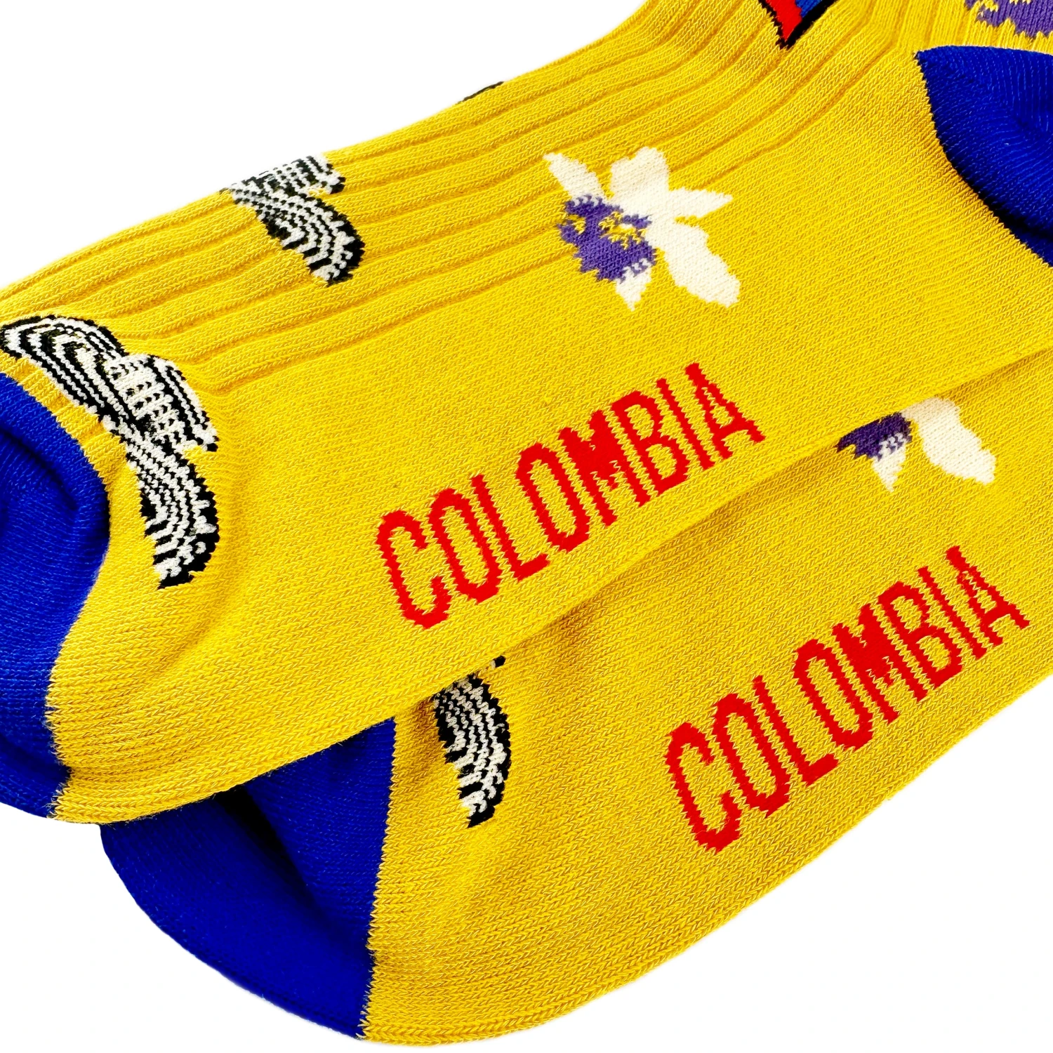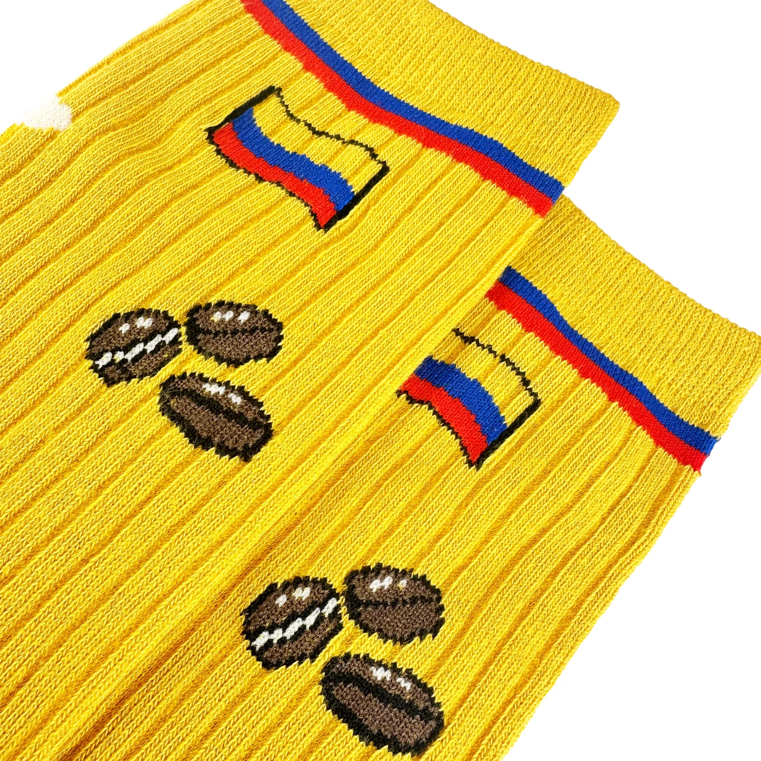 Step into Colombian culture with every stride. These premium crew socks celebrate the essence of Colombia—featuring iconic symbols like the Cattleya Trianae (national flower), the Sombrero Vueltiao, coffee beans from the Eje Cafetero, and the Colombian flag proudly stitched across a vibrant yellow backdrop.