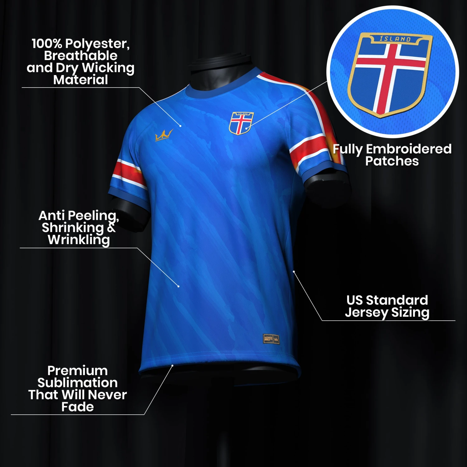 Combine your love of Football by copping our Iceland Heritage Custom Football Jersey. Customise your own name and number on the back of the jersey, or choose a simple look with no custom name and number! Featuring full embroidery on all patches and premium sublimation!