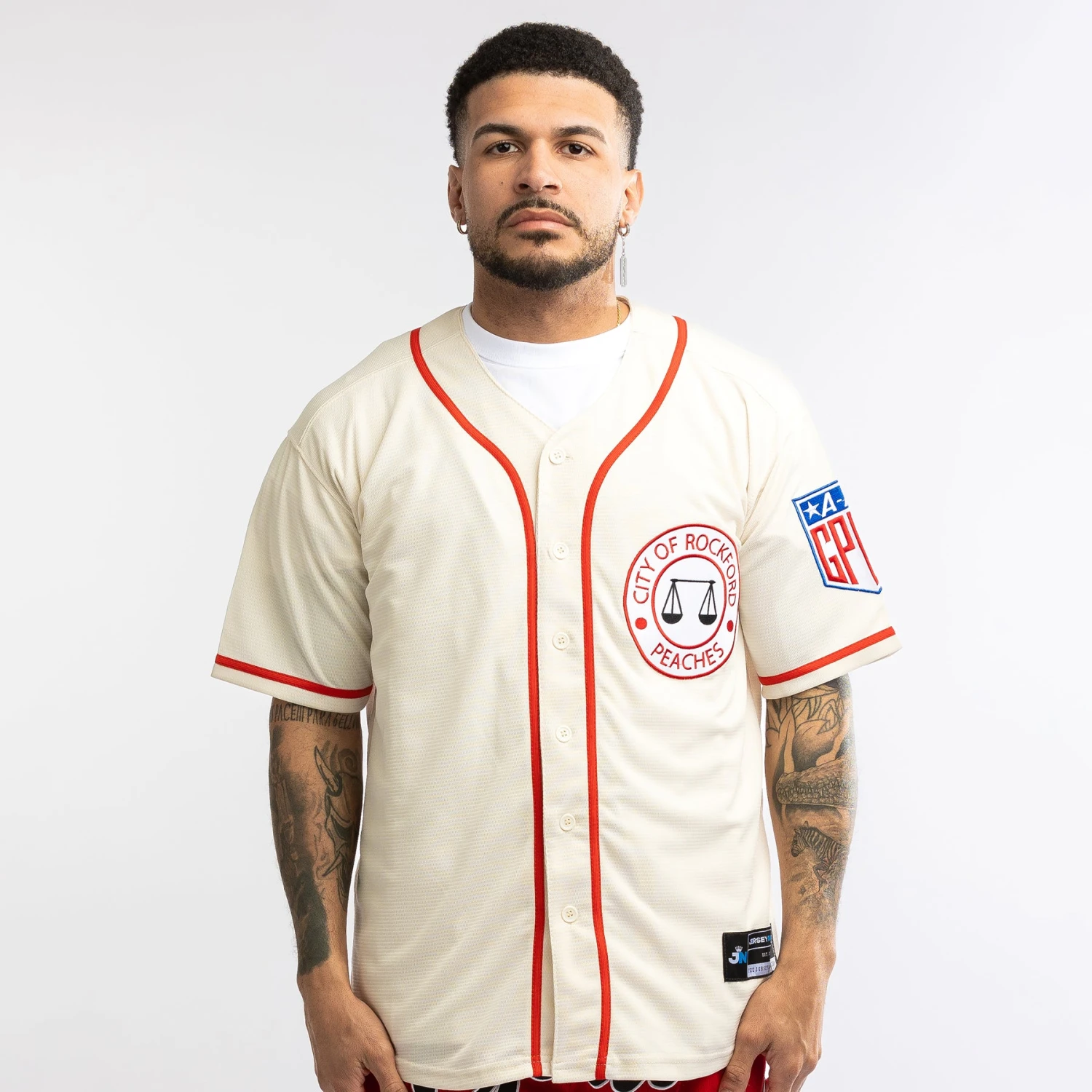 A classic throwback of the Jimmy Dugan Rockford Peaches Baseball Jersey has landed at Jersey Nation. Made from 100% recycled polyester fibres, this jersey design has an easy, relaxed fit that looks great on anybody. Available now at Jersey Nation while stock lasts!