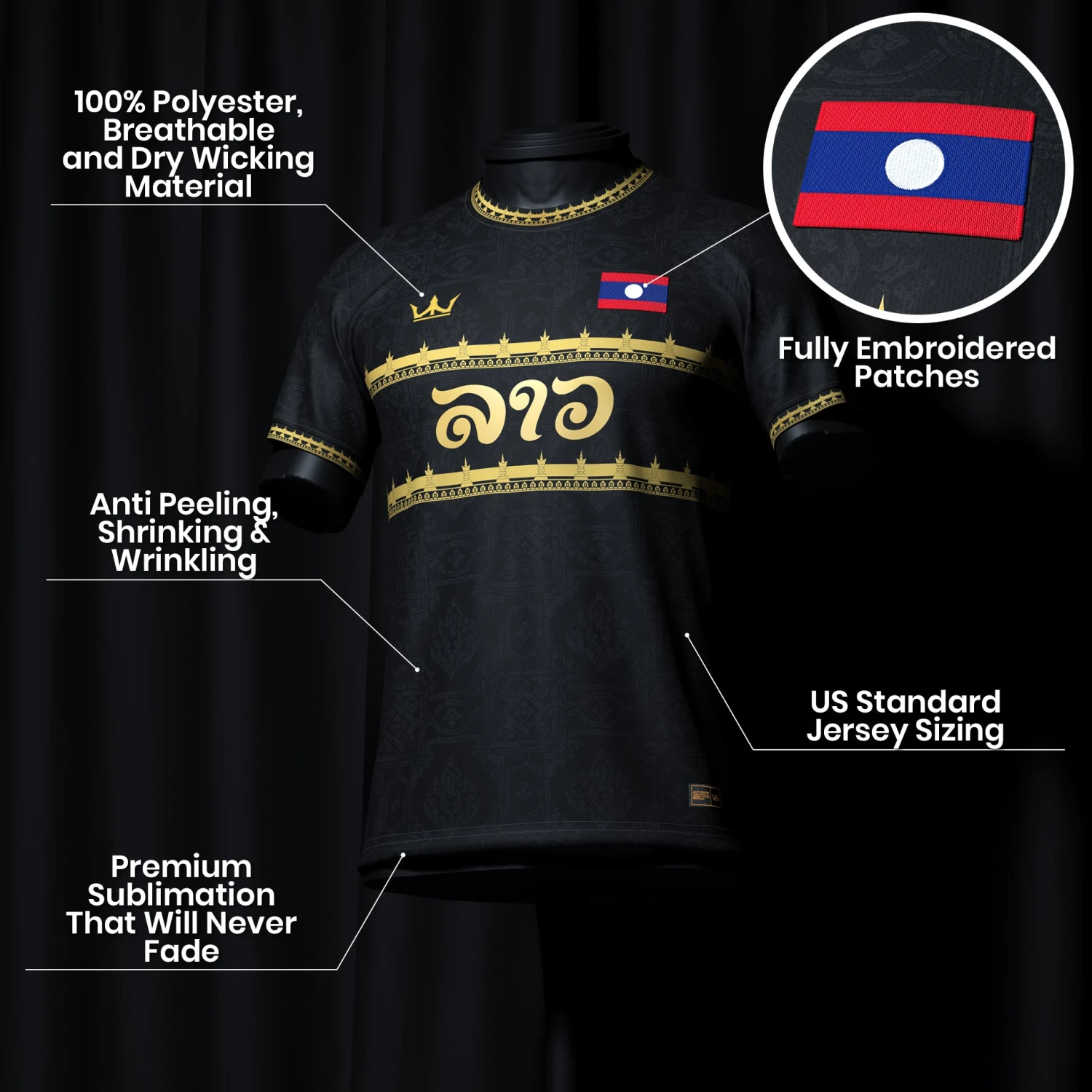 This jersey is an original design inspired by Laotian culture. It is not affiliated with, endorsed by, or associated with any national team, government, or sports federation.