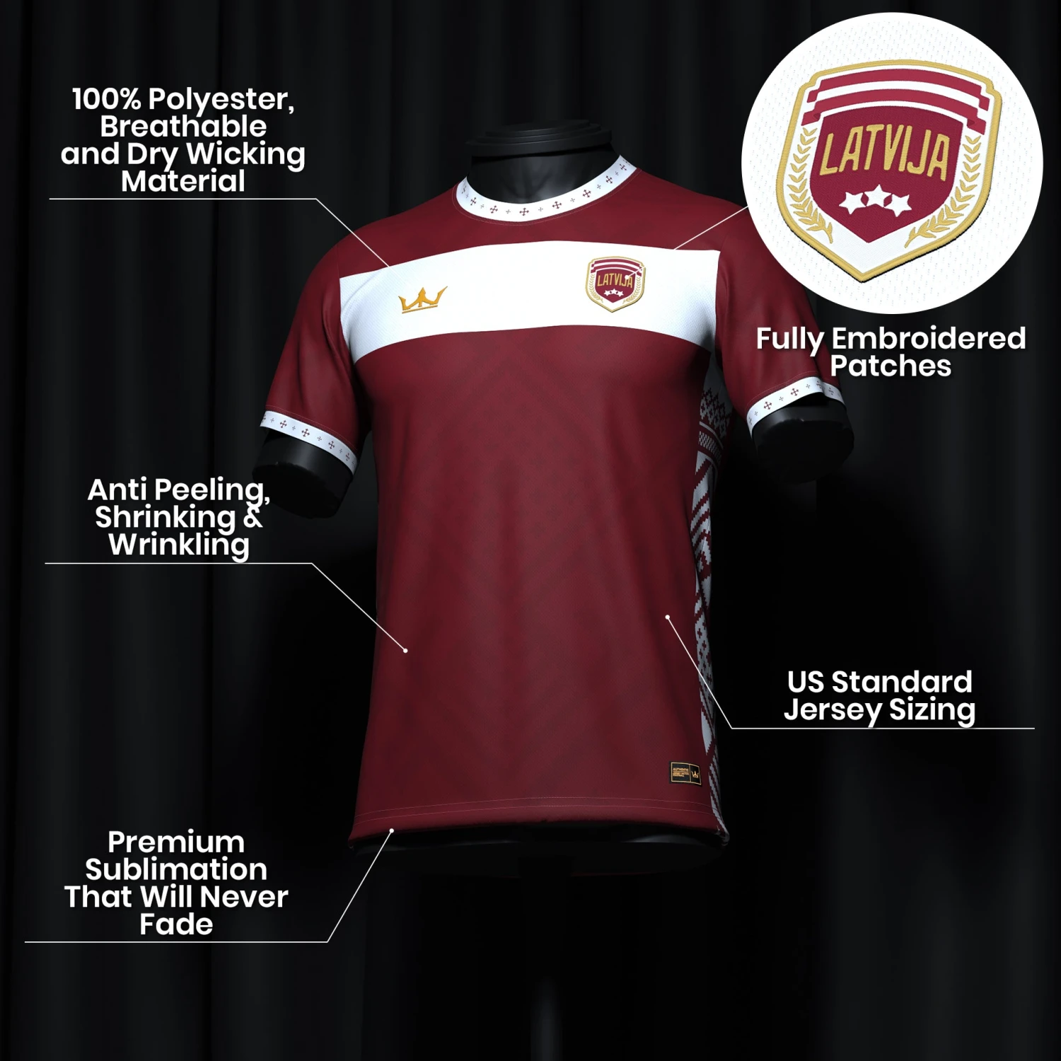 This jersey is an original design inspired by Latvian culture. It is not affiliated with, endorsed by, or associated with any national team, government, or sports federation.