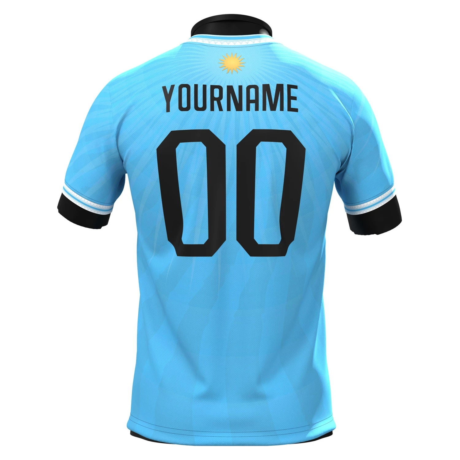 Combine your love of Football by copping our Uruguay Heritage Custom Football Jersey. Customise your own name and number on the back of the jersey, or choose a simple look with no custom name and number! Featuring full embroidery on all patches and premium sublimation!